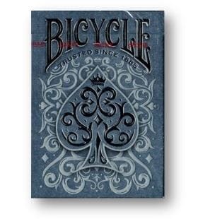 Bicycle Cinder is inspired by the elegant and mysterious smoke of a bonfire. The deck design features various shades of ash gray and features shiny silver foil with two levels of embossing for a 3D effect. Also includes a custom locking seal. The figures are in warm, golden colors, representing glowing coals from which smoke rises.