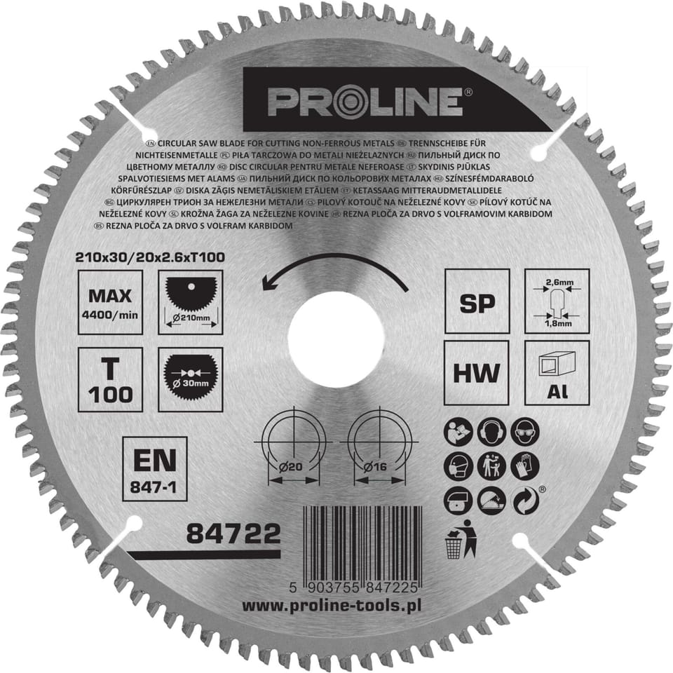 CIRCULAR SAW FOR METALS NIEŻEL. 210*100T*30/20/16MM PROLINE