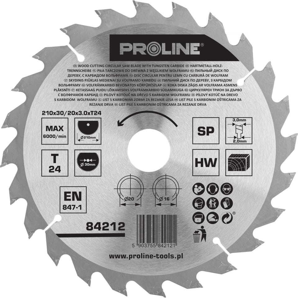 Circular saw for wood 210*24t*30/20/16mm proline
