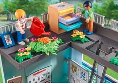 The play set includes two PLAYMOBIL figures and three child figures, a two-story school building with elevator and roof terrace, a dog and lots of lesson-themed accessories to re-enact exciting school days at home.