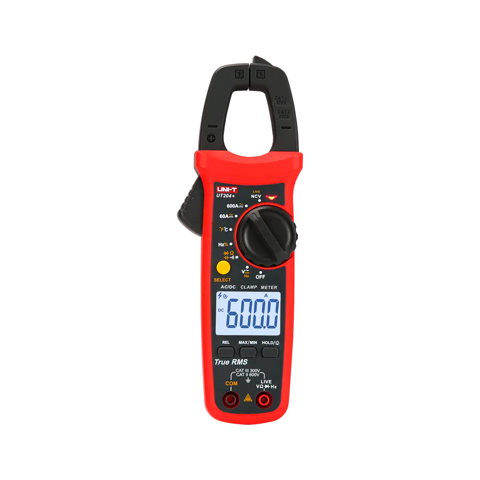MEASURING RANGESDC constant voltage: 600 V ? (0,5%+2) AC voltage: 600 V ? (0,8%+5) DC dcndum intensity: 400 A ? (2,5%+5) AC intensity: 400 A ? (2,5%+5) Resistance: 60 MOhm ? (0,8%+2) Capacity: 60 mF ? (4%+5) Temperature: -40°C ~ 1000°C ? (1,5%+5) Frequency: 10Hz~10MHz ? (0,1%+4) Diode test Checking circuit continuityADDITIONAL FUNCTIONSAutomatic change of measuring ranges Automatic shutdownDepend measurementTrue RMSNCVFreeze the last indication Maximum/minimum value indication FunctionRecorder functionMaximum reading: 6000TOTAL VALUESPower: 2x 1.5 V (R03) Battery Maximum jaw spacing: 28 mm Display: 37 x 25 mm Net weight: 235 g Dimensions: 215 x 63 x 36 mm Included: Batteries, measuring wires, thermocouple