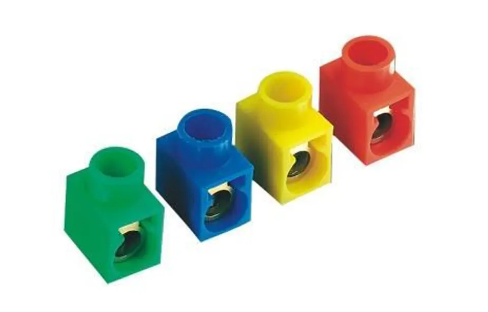 Threaded clamping fitting in green. The main application for connecting wires in electrical installation boxes, lighting technology, in distribution cabinets and other electrical installation work.