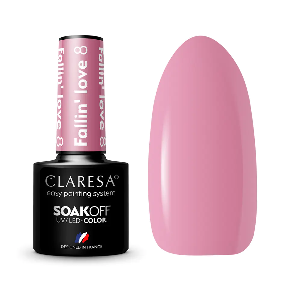 CLARESA Hybrid polish FALLIN"LOVE 8 Fallin' Love is a collection of 13 colors in light and dark shades, powder pink and beige. The exception is 4 shimmering shades of red and yellow, which are a perfect addition to the other, calm shades. August and September are the months in which the holidays end and very slowly begins a beautiful, colorful autumn and with it comes the time for long walks in the park. To emphasize the tan gained on summer trips, reach for one of the 13 colors of the Fallin' Love collection and enjoy a beautiful, romantic manicure!