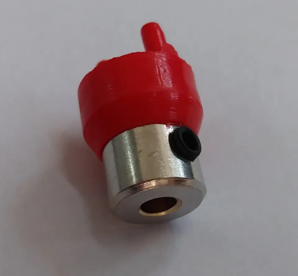 The 3 mm axle clutch element has pins and a mount with an Allen screw.
