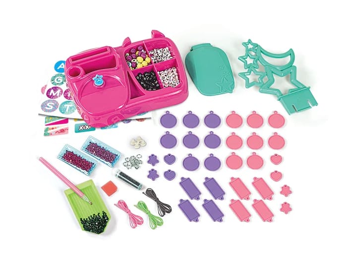 A set for creating personalized jewelry with letters, colored beads and sparkling gems. It uses different techniques to explore one of the most popular trends today: personalizing necklaces, bracelets and other accessories.