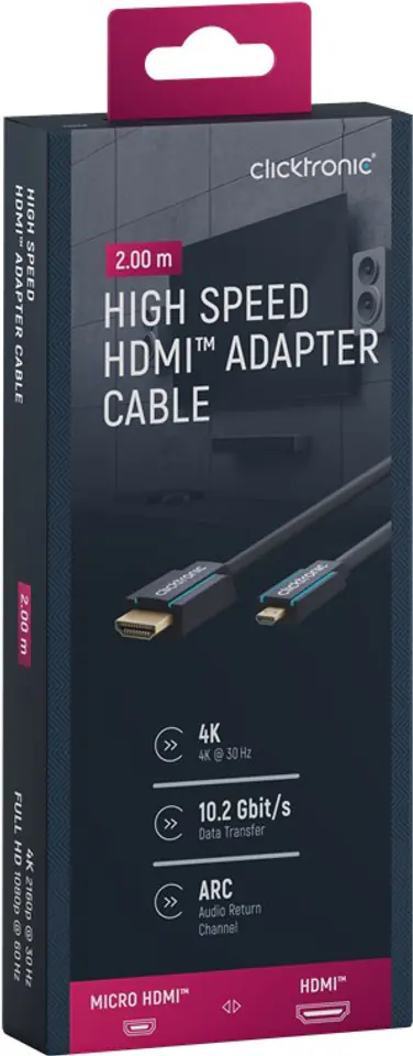 High-quality, thick, solid HDMI to HDMI micro cable for clear and high-quality audio and video.