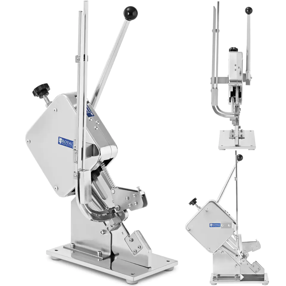 The Royal Catering clipper enables quick and reliable closing of casings, sausage nets and non-food products. The operation of the device is simple and precise, it is carried out using a manual lever. The clamping force is regulated by means of a knob. The front rail holds up to 200 aluminum clips (not included). All important elements are made of chrome-plated iron and stainless steel. Wide base with rubber feet ensures the stability of the clipper. If necessary, it is possible to screw to the ground.
