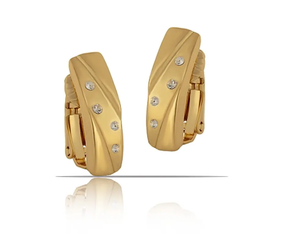 Classic clip pattern with the addition of Swarovski crystals. Length 1.9cm, width 0.6cm. Gold-plated clips.
