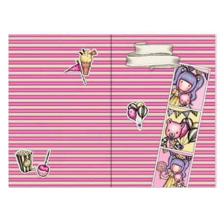 Lockable Notebook - Gorjuss - First Prize The fantastic First Prize series is decorated with a graphic of a girl Gorjuss with a sweet teddy bear, on a background in lilac color, enriched with accessories from the amusement park: balloons, popcorn, lollipops, cotton candy. A lovely notebook locked with a key. Clasp in the color of old gold. Hardcover cover and two keys. Covers made of thicker cardboard, coated with satin paper. Paper inside - 136 sheets in a line, weight 150 g / sqm. On the covers of graphics with the image of a girl Gorjuss. Elegant, looks like a book. Dimensions: 12.8 cm x 18 cm x 2 cm. A fun Fairground collection full of backpacks, accessories and stationery, which refers to the mysterious adventures experienced in the Amusement Park full of fireworks, carousels, barrels of laughter, swings and prizes won. Funny pompoms, patterns full of delicacies or metal pendants will take us to the colorful world of Santoro, full of surprises that await us in the amusement park. This is a collection that we will treasure for many years. Follow the girls, the heroines of series 4: Up & Away, Fireworks, Carusel and First Prize and discover an exciting collection full of wonderful treats! 577GJ24