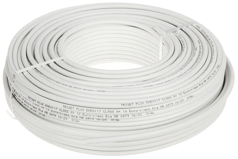 High quality coaxial cable TRISET-PLUS dedicated for both individual and community installationsCable made in LSZH sheath (LS0H) - halogen-free insulation, used where greater safety is needed in the event of fire (high and high-rise residential buildings, public utility buildings).