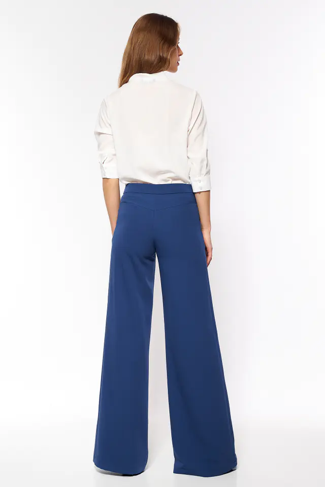 Przywitaj wiosnę kolorem! Kobaltowe spodnie typu palazzo to doskonały element stylizacji soft-office, wychodzącej poza kanon. Nieoczywisty kolor przełamie klasyczną stylizację biurową, a przyjemny w dotyku materiał, z domieszką elastanu, zapewni wysoki komfort noszenia. Skład: 74,8% poliester, 23,1% wiskoza, 2,1% elastan. Modelka na zdjęciu ma 177 cm wzrostu i ma na sobie rozmiar 36.