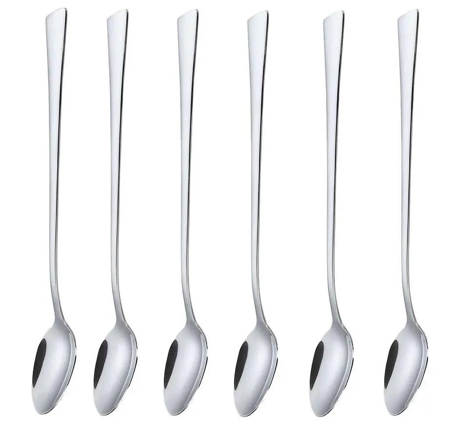 6 cocktail spoons made of high-gloss polished stainless steel.