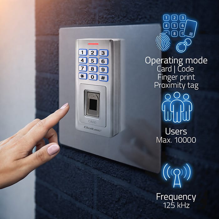 Qoltec OBERON combination lock uses electronic encryption technology. It has several programming options. It supports up to 10000 users. It can be opened, for example, with an individual access code consisting of any combination of digits, if correct the lock releases the lock and unlocks access.