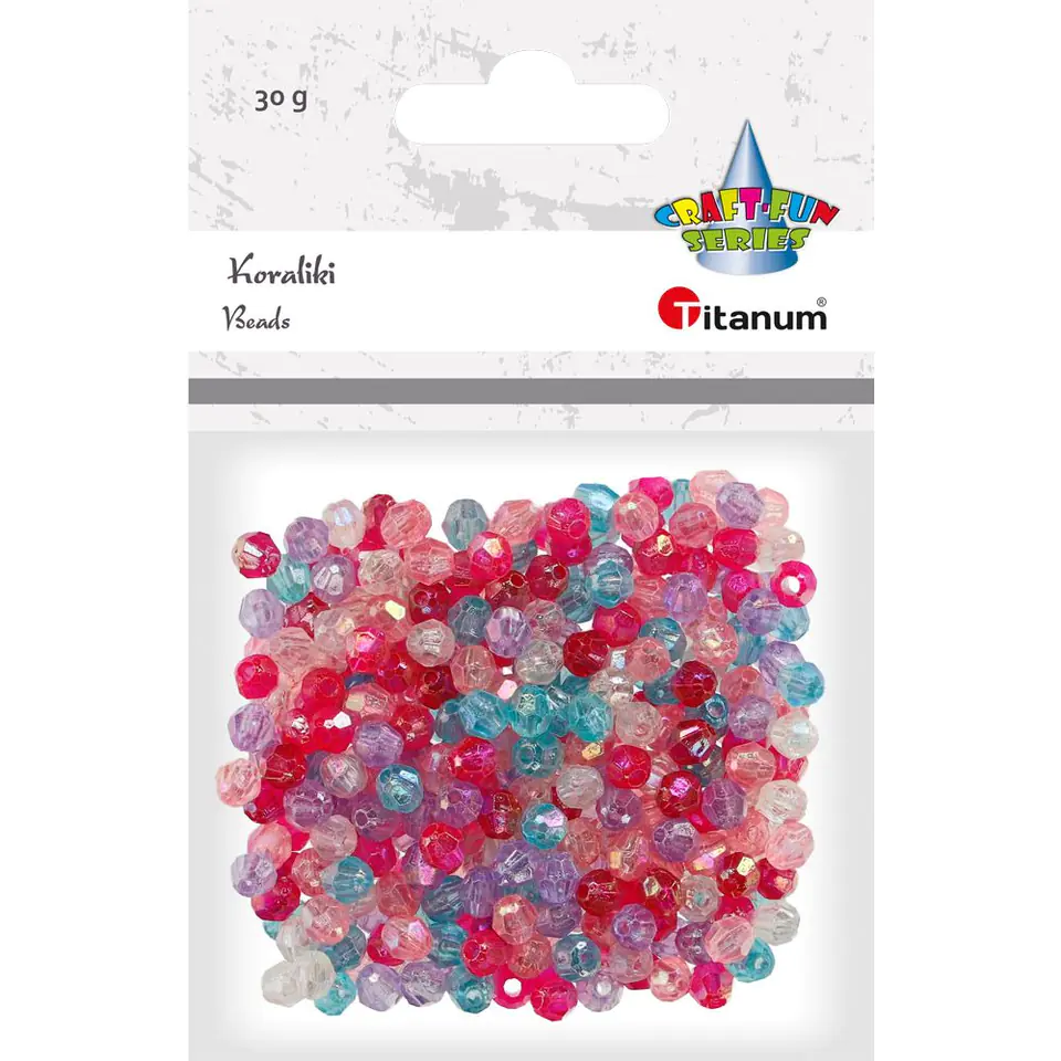 Plastic beads for threading, oblong faceted, colour: turquoise, fuchsia, pale pink, white, heather, diameter: 6 mm. Package 30 g.