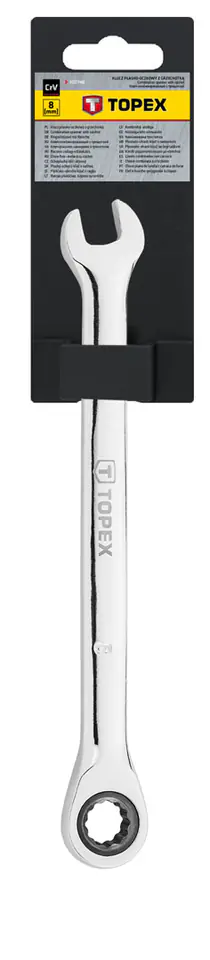 The TOPEX ratchet (ref. 35D740) flat-mesh wrench in size 8 mm is distinguished by a precise, 48-tooth ratchet mechanism used in the mesh. This solution definitely facilitates and speeds up work. Made of high quality chrome vanadium steel, ensuring long key life. The TOPEX brand is addressed to DIY enthusiasts.