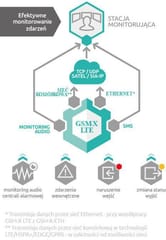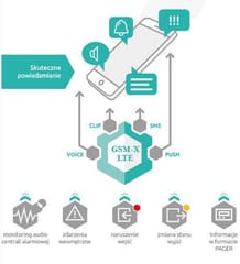 Moduł komunikacyjny GSM-X-LTE umożliwia wykorzystanie sieci 4G GSM w charakterze głównego lub zapasowego toru łączności dla centrali alarmowejUrządzenie jest widziane przez centralę alarmową jak analogowa linia telefonicznaModuł samodzielnie monitoruje stan zarówno sieci telefonicznej, jak i połączenia GSM za pośrednictwem obu kart SIM, co pozwala na wybór optymalnej drogi transmisjiZgodność urządzenia z sieciami komórkowymi LTE zapewnia najwyższą jakość i niezawodność transmisji danych