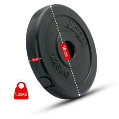 Composite load Allright.Composite disc in black. Bore diameter 28mm. The Allright composite load is ideal for a low-cost home gym. The outer layer of plastic is thick and at the same time quite flexible, which guarantees high comfort of use, protects the equipment and the floor from damage. Material: PVC plastic, cement. Diameter: about 18 cmThickness: about 3 cm