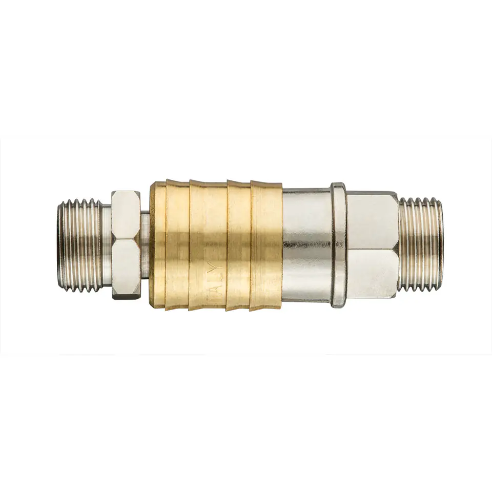 Compressor quick coupler with tip, external thread, stainless steel, brass