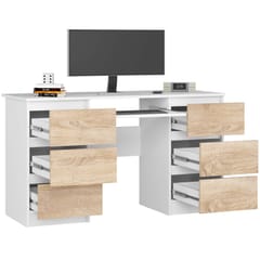Computer desk A-11 135 cm in white with fronts in the shade of sonoma, is a functional, practical and ergonomic piece of furniture, which is equipped with 6 very handy, useful and capacious drawers. This gives the opportunity for better organization of space through orderly storage of these things, which, for example, our children can be useful during learning or doing homework. Finally, it should be remembered that more and more often when fulfilling school duties, our children use the benefits of technology in the form of a computer and the Internet.