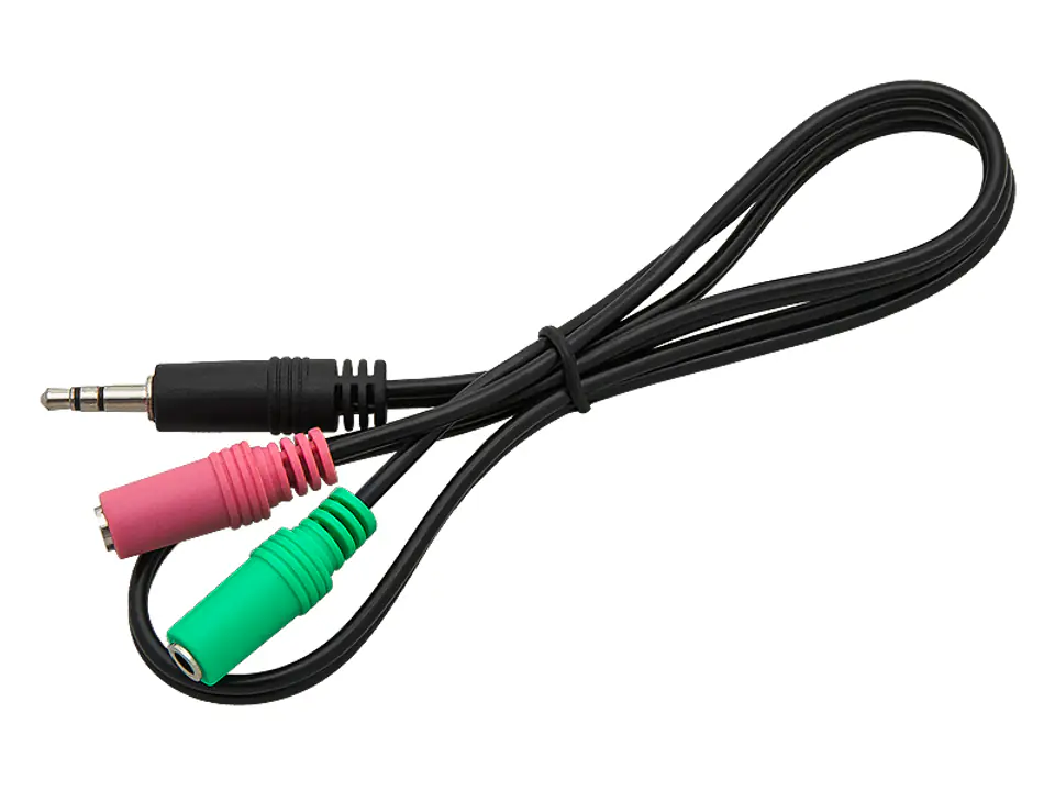 Connector with 3.5 mm stereo minijack plug and 2 x 3.5 mm stereo jacks. Jacks are used to transmit analog signals, mainly audio connections.