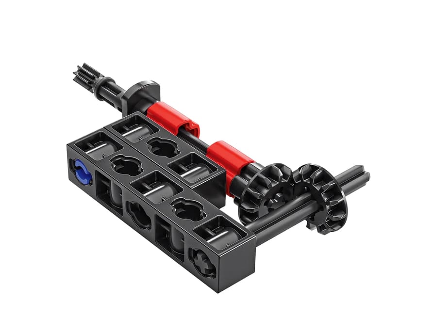 The kit contains over 80 pieces to build two different models equipped with gear mechanisms and a working control system.