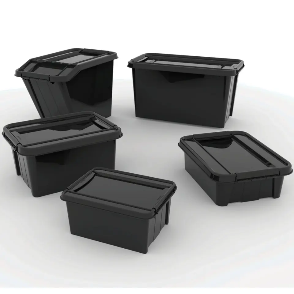The capacity of the boxes ranges from 14 to 70 litres, making the Pro Box RECYCLE suitable for a variety of storage needs. All boxes can be stacked, which allows optimal use of storage space, and recesses and furrows in the lid prevent them from being moved when stacking on top of each other.