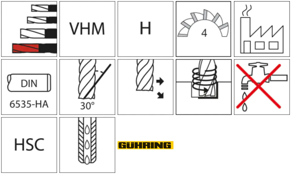 Application: can be used for HSC high-speed roughing at low ap and highest fz.