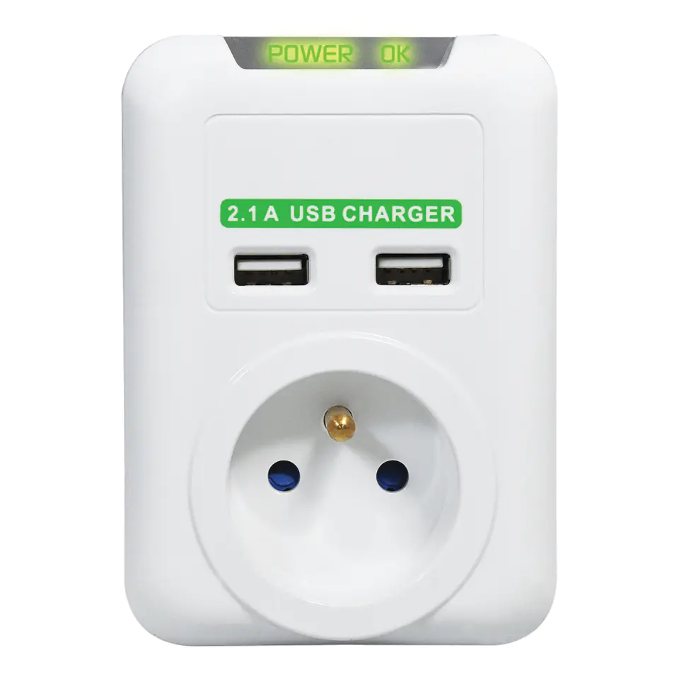 Cordless power strip, 1 socket, white, Logo, 2x USB