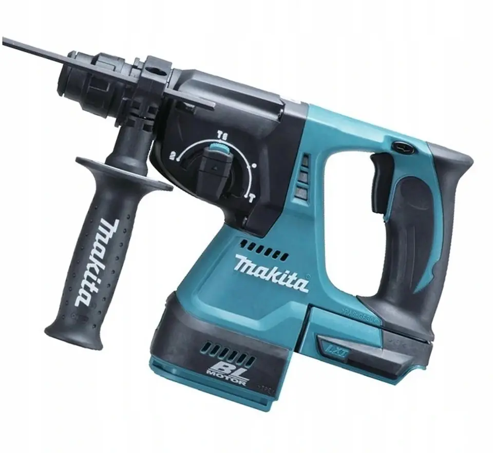 Professional makita DHR242 cordless hammer with tool holder type SDS-PLUS. 3 modes of operation: drilling, hammer drilling and forging.