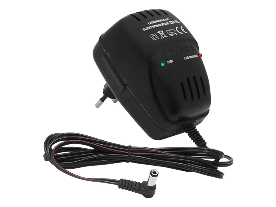 The charger is dedicated to powering and charging the battery of power tools. It allows direct charging of the battery or, when connected to the stand/holder, powers the electronics of the device's charger. The charger is dedicated to batteries: NiMH, NiCd, Li-ion. The battery model determines which battery it is dedicated to.