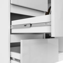 The body of the furniture has a matte white color, drawer fronts - high-gloss black, which uses acrylic technology offering the highest gloss standard on the market. The desk uses a high-quality laminated board with a thickness of 16 mm, which is manufactured by Kronospan. The edges of the board are covered with a modern ABS edge. The furniture is resistant to abrasion and mechanical damage resulting from normal use. Its drawers move on high-quality metal roller guides.