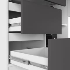 The B16 exposed desk is an interesting proposition for all people who want to buy a comfortable piece of furniture for work. It will work both at home and in the office. The corner shape makes it more functional. The desk has a top with a width of 124 cm, as well as two shelves and three drawers, thus giving a lot of free space to develop - for example, binders can easily fit on the shelves. The furniture has a white color in addition to the drawer fronts, which are in a shade of gray graphite. Their advantage is that they move slightly on metal roller guides.