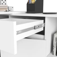 Corner desk with a chest of drawers is an interesting and very modern proposition created for people who have the task of developing a small office space. The combination of a desk and a chest of drawers is a solution characterized by functionality as well as interesting design. Fashionable white color works perfectly in any space, adding warmth, cleanliness and coziness to the arranged room.