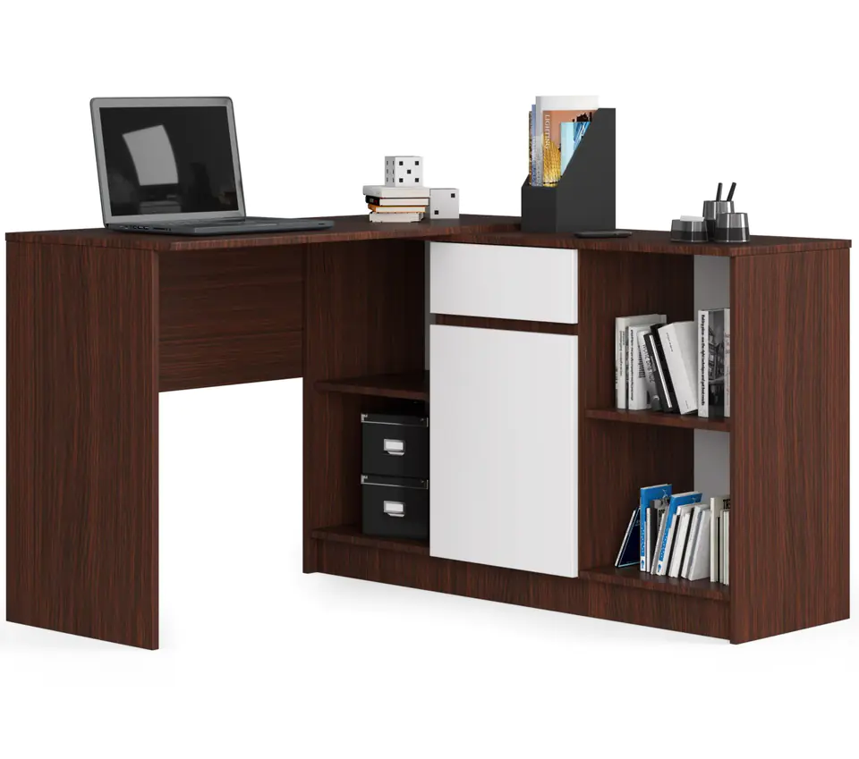 This desk is ideal for classic and modern interiors. It is an extremely practical piece of furniture, allowing for beneficial development of the space of the room in its corner. The corner desk can be set up in any configuration in the room, creating a really comfortable place to work. The high resistance of the countertop to abrasion makes the furniture perfect for everyday, intensive use.