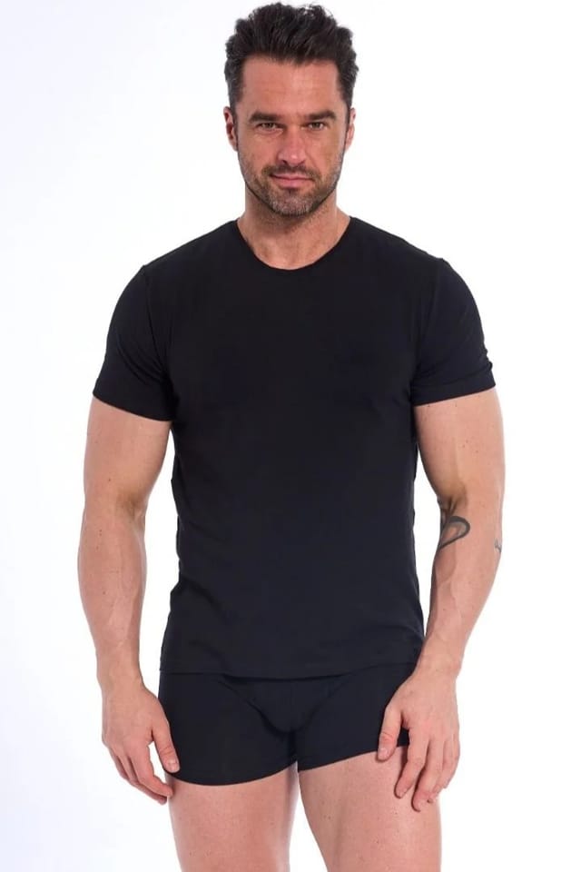 Komfortowa koszulka męska z krótkim rękawem. Dekolt półokrągły zakończony ściągaczem. Wykonana z wysokiej jakości bawełny.