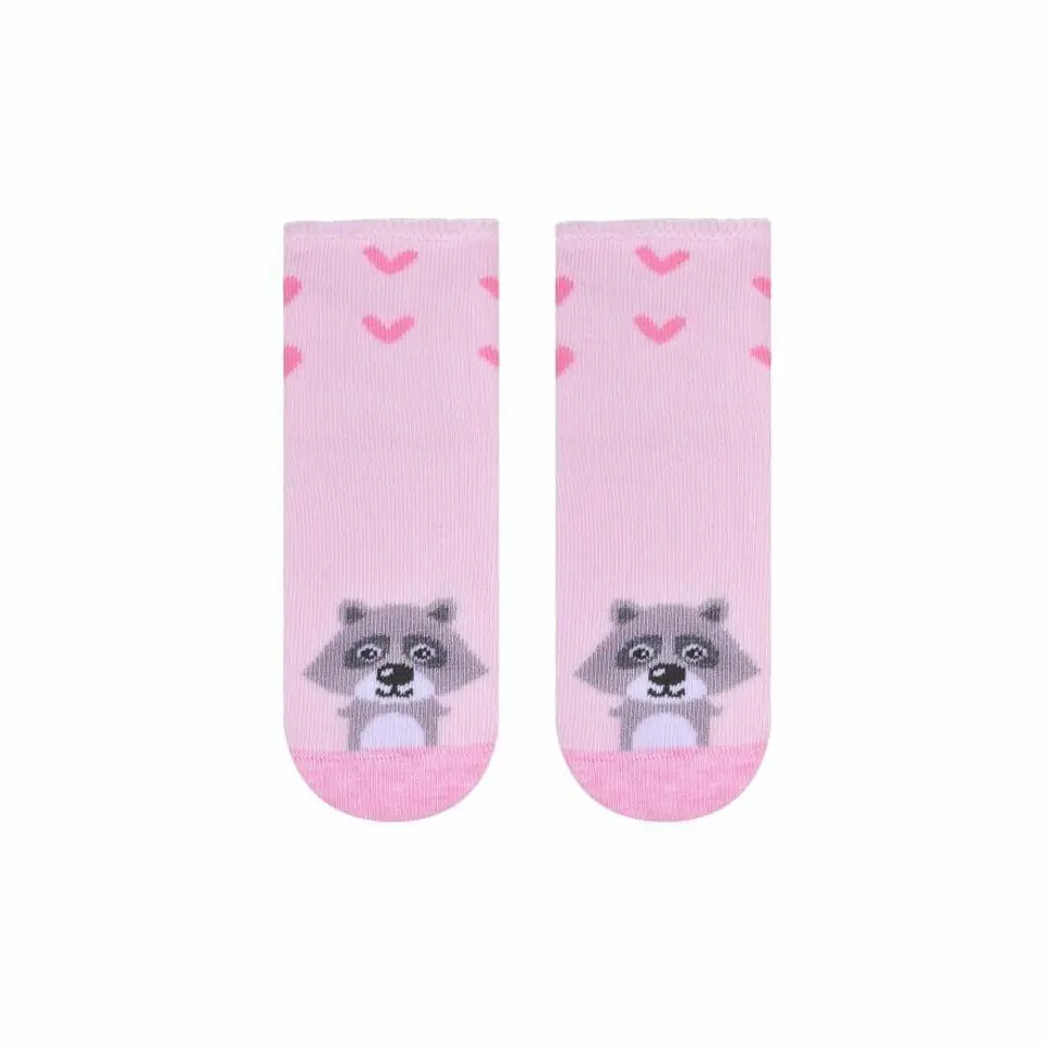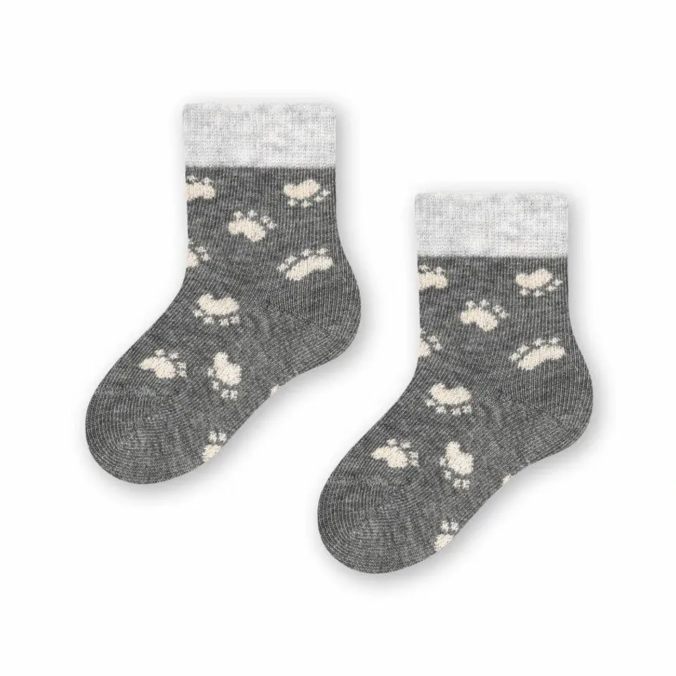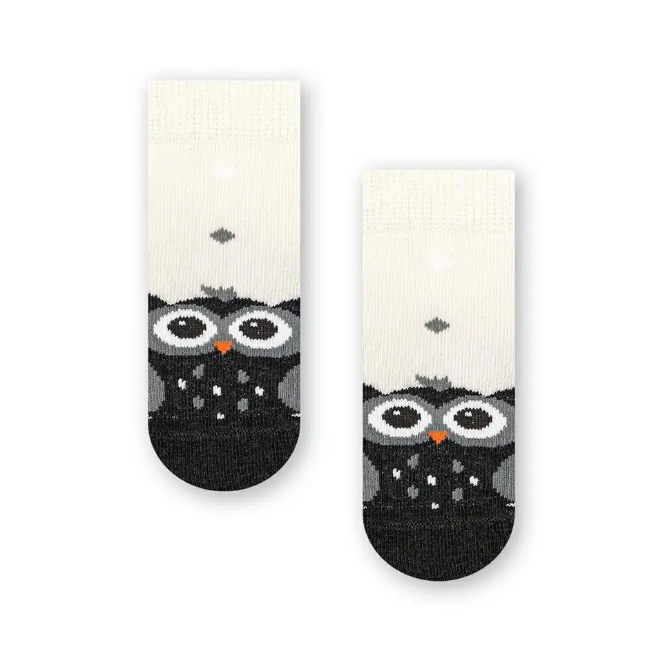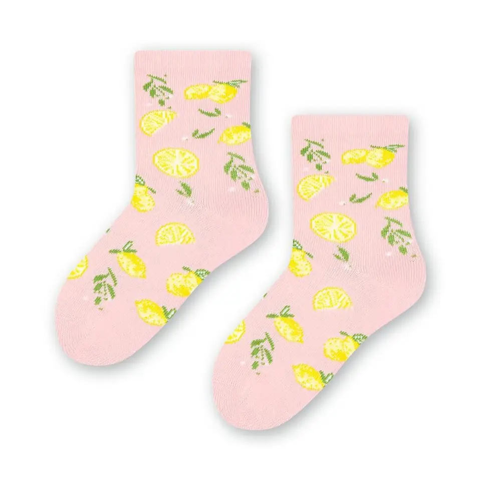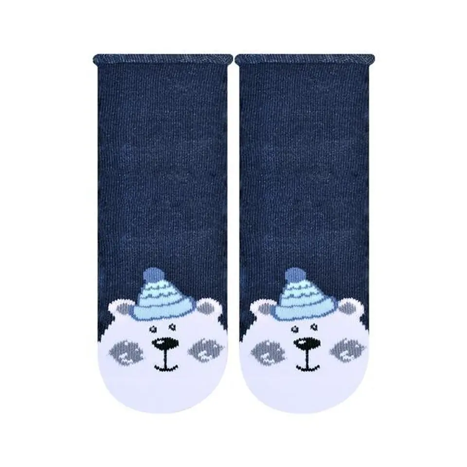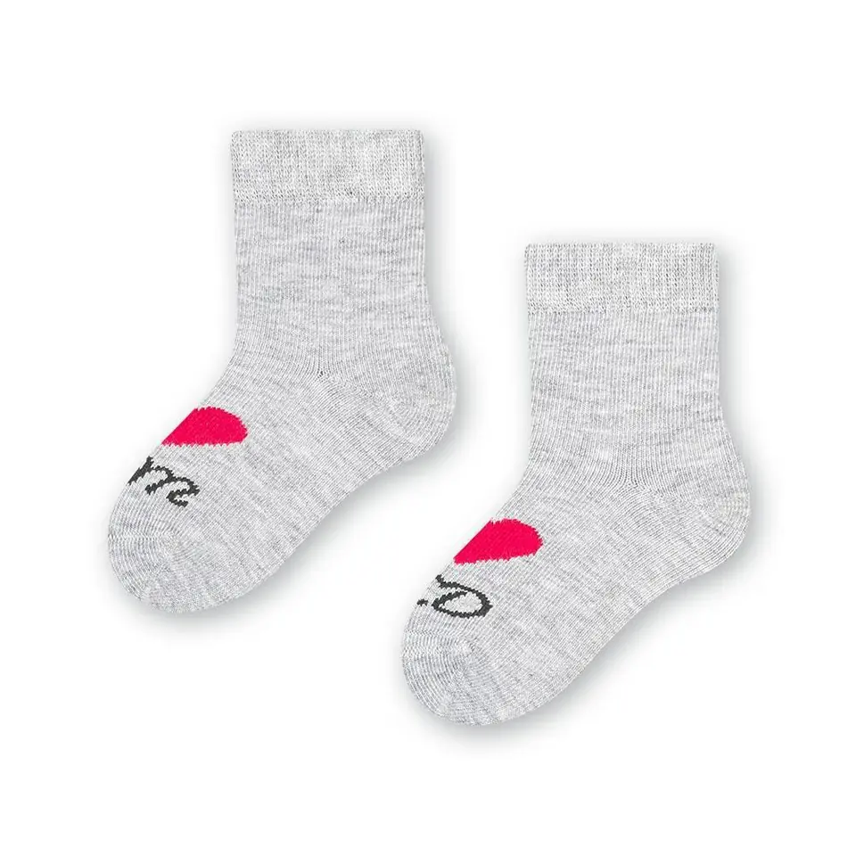 Cotton modeled baby socks. Made of high quality yarn, soft and delicate. Fancy welt finished with a picot or classic. High comfort of use thanks to the use of seamless joints. The product is offered in various design and color variants.