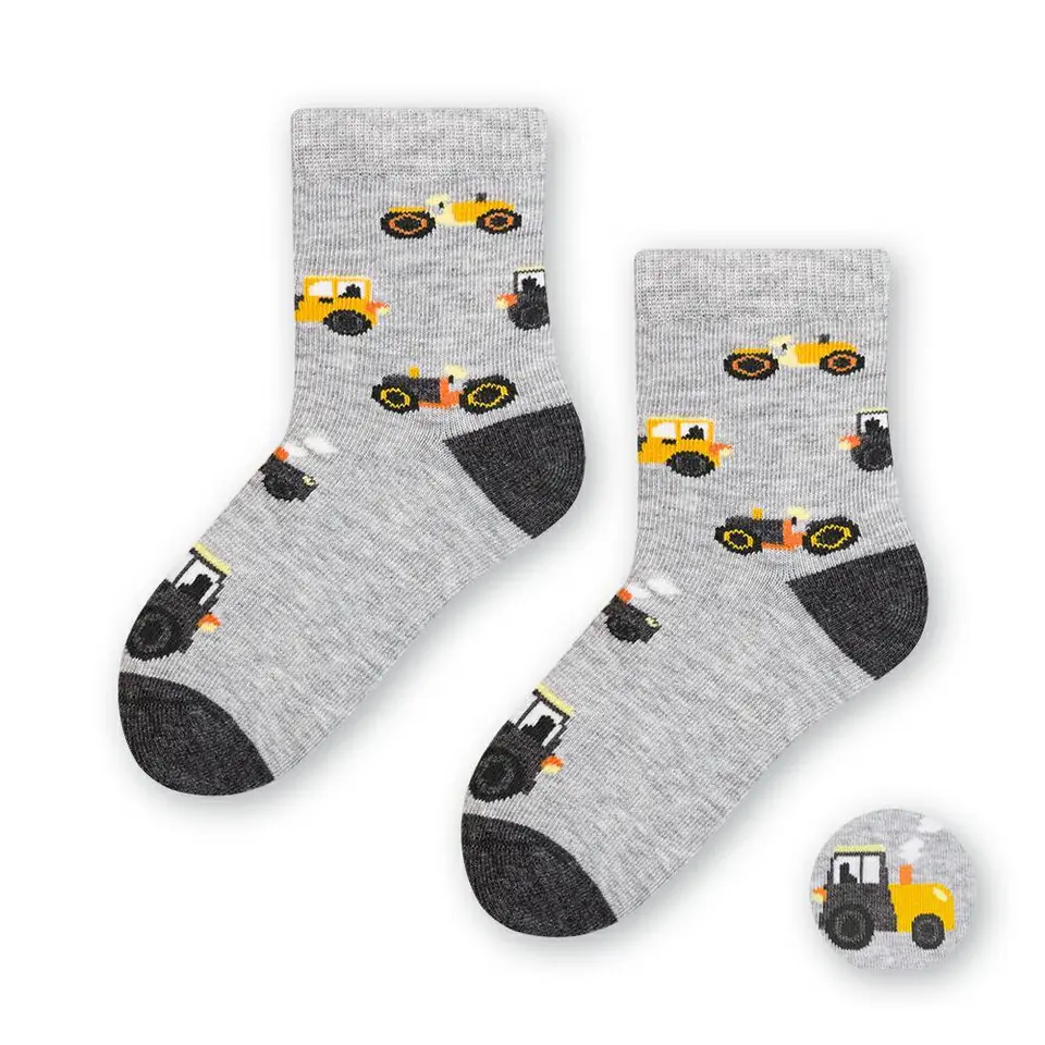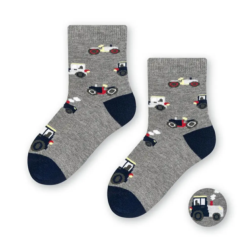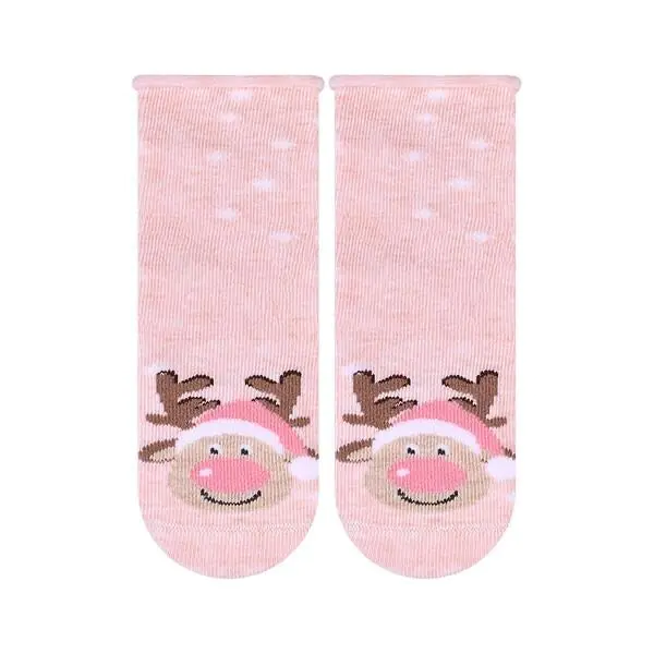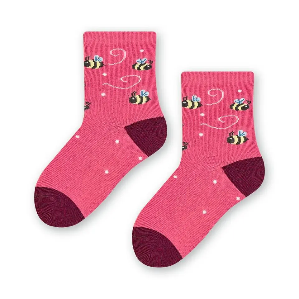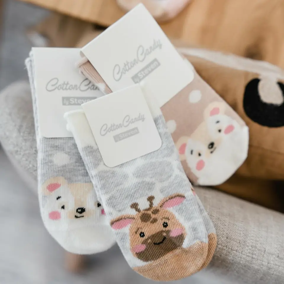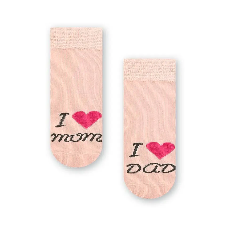 Cotton modeled baby socks. Made of high quality yarn, soft and delicate. Fancy welt finished with a picot or classic. High comfort of use thanks to the use of seamless joints. The product is offered in various design and color variants.