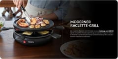 The modern Raclette CR 6606 grill with a power of 1200 W is perfect for preparing gorce przekski for several osb. You can simultaneously grill karkwk on it and prepare baked cheese skews.