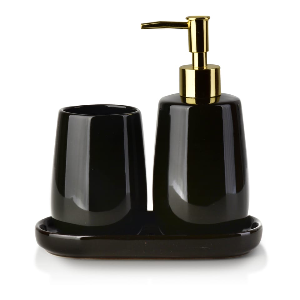 Three-piece set consisting of a dispenser for liquid soap or lotion,