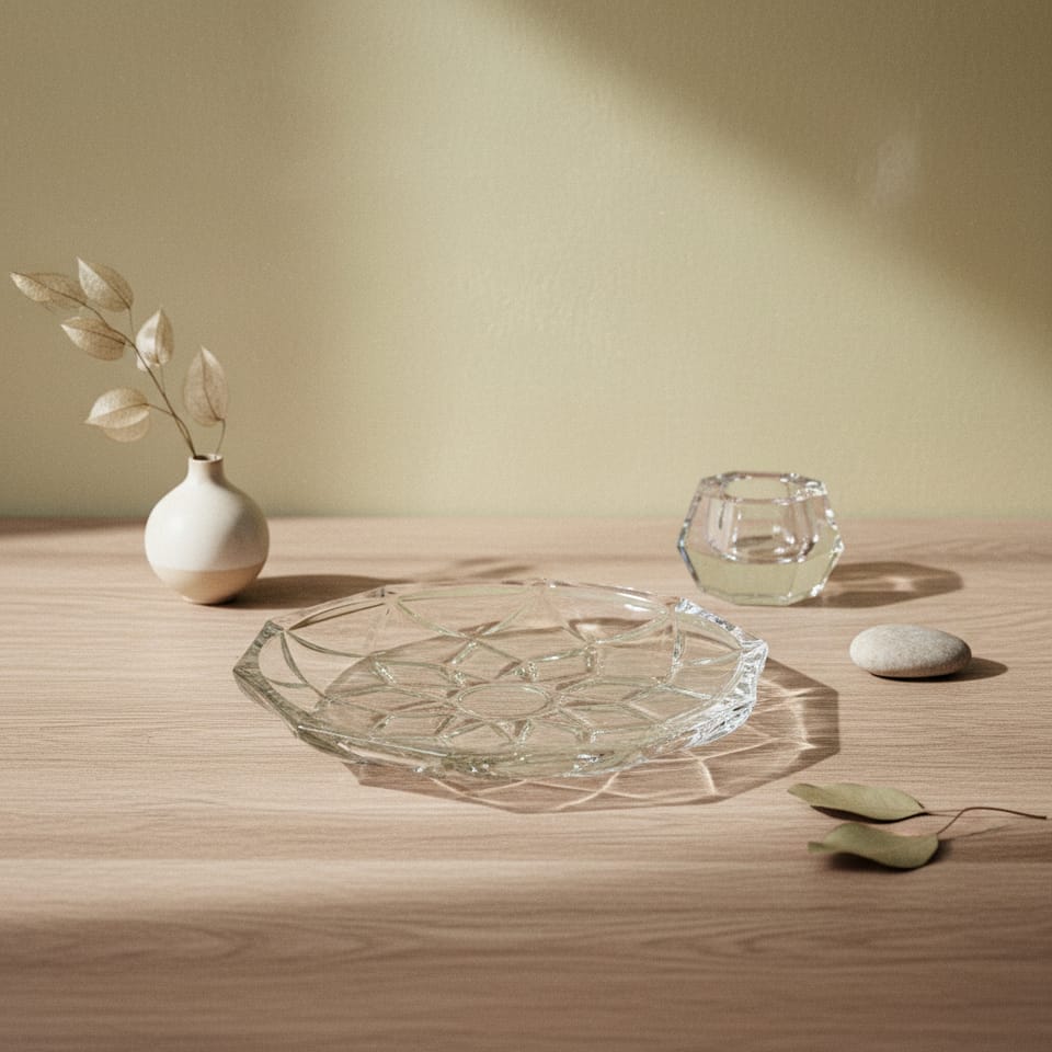 Beautiful glass plate from the CRISTO series by AFFEKDESIGN. Thick, good quality glass and elegant form will make your table unique.