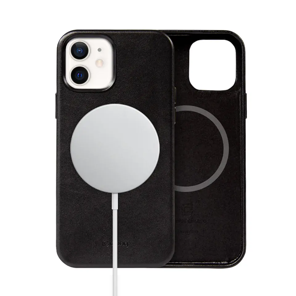Leather protective case for iPhone 12/12 Pro with built-in magnet for charger and accessories from MagSafe. The special ring inside the case consists of 38 smaller magnets with high attractiveness. Their arrangement makes the MagSafe charger and other accessories fit the Crong case and adhere to the phone in a perfect way.