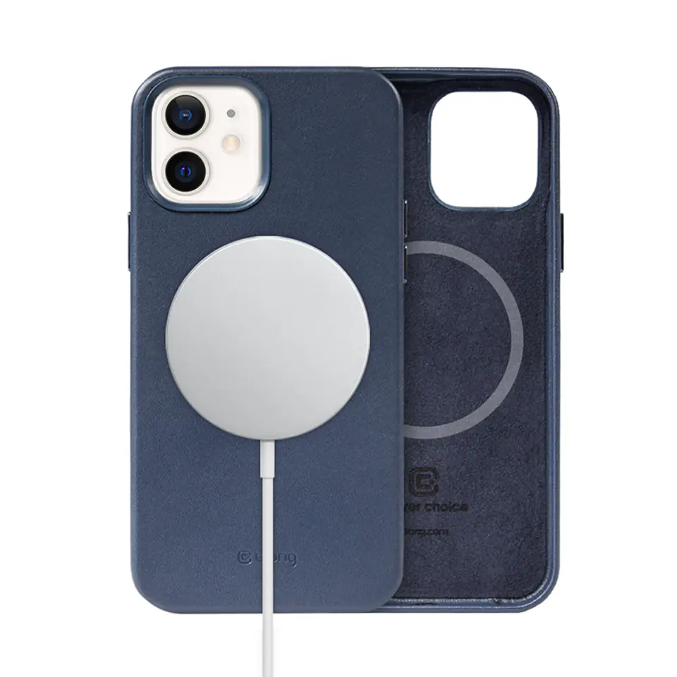 Leather protective case for iPhone 12/12 Pro with built-in magnet for charger and accessories from MagSafe. The special ring inside the case consists of 38 smaller magnets with high attractiveness. Their arrangement makes the MagSafe charger and other accessories fit the Crong case and adhere to the phone in a perfect way.