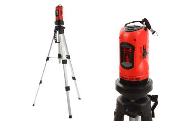 Self-leveling laser on a tripod The new generation mechanical compensator with magnetic damping enables automatic determination of verticals and levels without preparation. Specification: Compact cross laser Self-leveling function Precise determination of spatial dimensions Determines surfaces and angles Laser rotating function allows vertical and horizontal positioning Tripod base and goggles included Color: Red Specifications: Range: 10 m, power supply: 2 x AA 1.5 V batteries included, height 60 cm, wavelength: 650 nm, accuracy of laser level (line): approx. +/- 0.5mm, cross Accuracy: + - 0.5mm/m, self-leveling time: <6 seconds. Included: Laser with stand tripod glasses suitcase manual