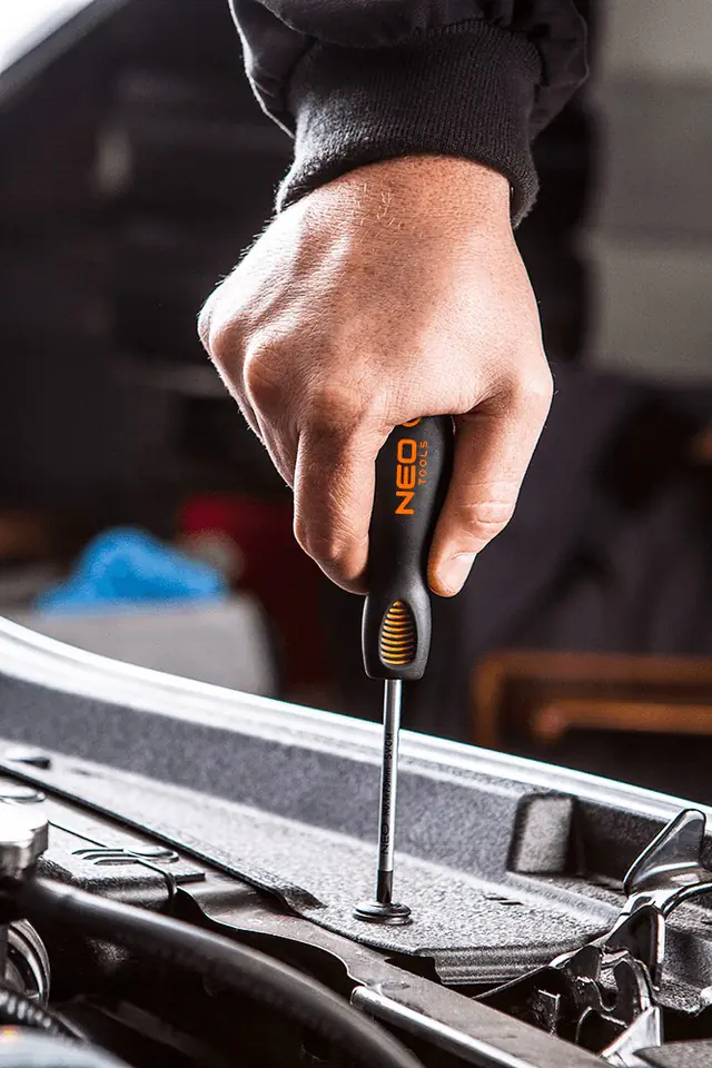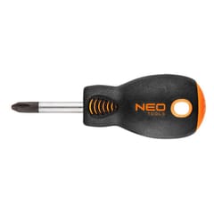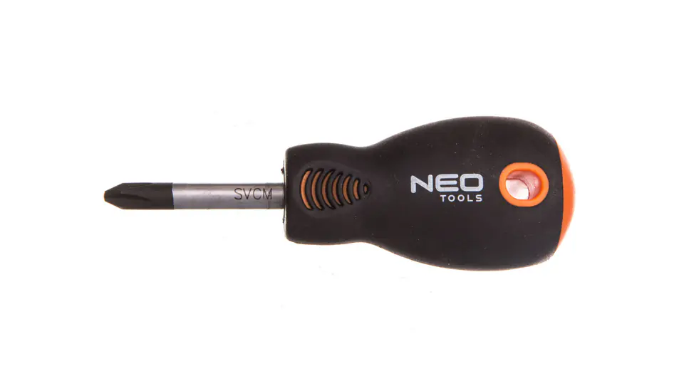 Cross screwdriver PH NEO (ref. no. 04-023) with dimensions PH2 x 38 mm. The tip of the screwdriver is made of extremely durable S2 steel. The working tip of the tip has been heat treated, thanks to which adequate hardness and bend resistance of 56 HRC have been obtained. The screwdriver has a magnetic tip. The triangular shape of the handle with contoured thumb rest reduces the strain on the hand during operation and makes it easy to achieve optimal torque. The two-material handle prevents slipping in the hand, is resistant to chemicals, oils and greases. The quality of the tool is confirmed by the TÜV certificate and a 25-year manufacturer's warranty. The NEO brand meets the expectations of professionals.