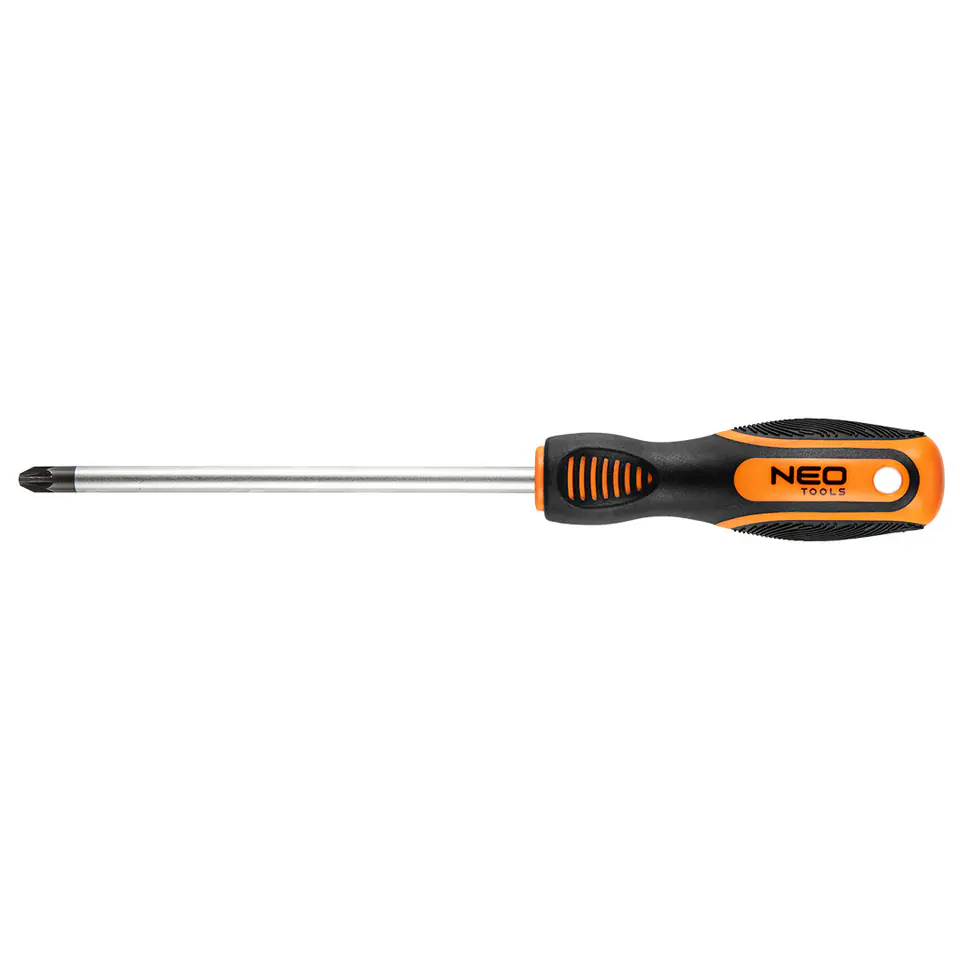 NEO cross screwdriver (ref. no. 04-185) useful for mechanical work and DIY. 150 mm long tip made of durable chrome vanadium steel, ensuring a long tool life. The PZ3 magnetic tip made of hardened steel makes it easy to work with the tool. Ergonomic plastic handle covered with non-slip material ensures safety and comfort during operation. The NEO brand meets the expectations of professionals.