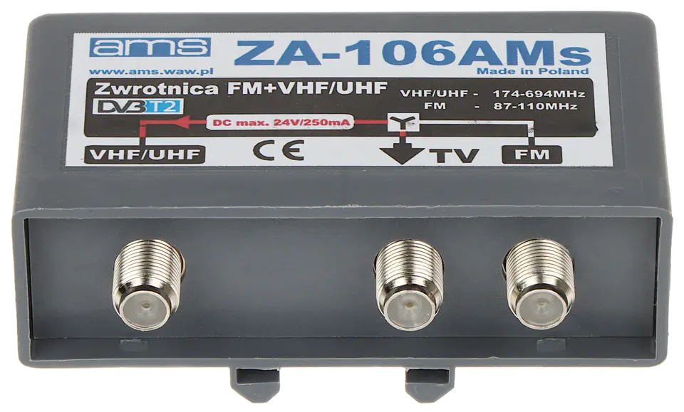 ZA-106AMS allows you to transmit DC power max. 24V/250mA to power the amplifier mounted in the antenna box (power supply is possible in the VHF/UHF branch)