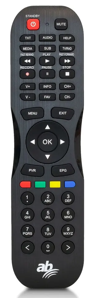 Replacement V2 remote control for AB CryptoBox 8XX / 7XX / 6XX / 5XX / 4XX series and AB TereBox 2T series receivers.