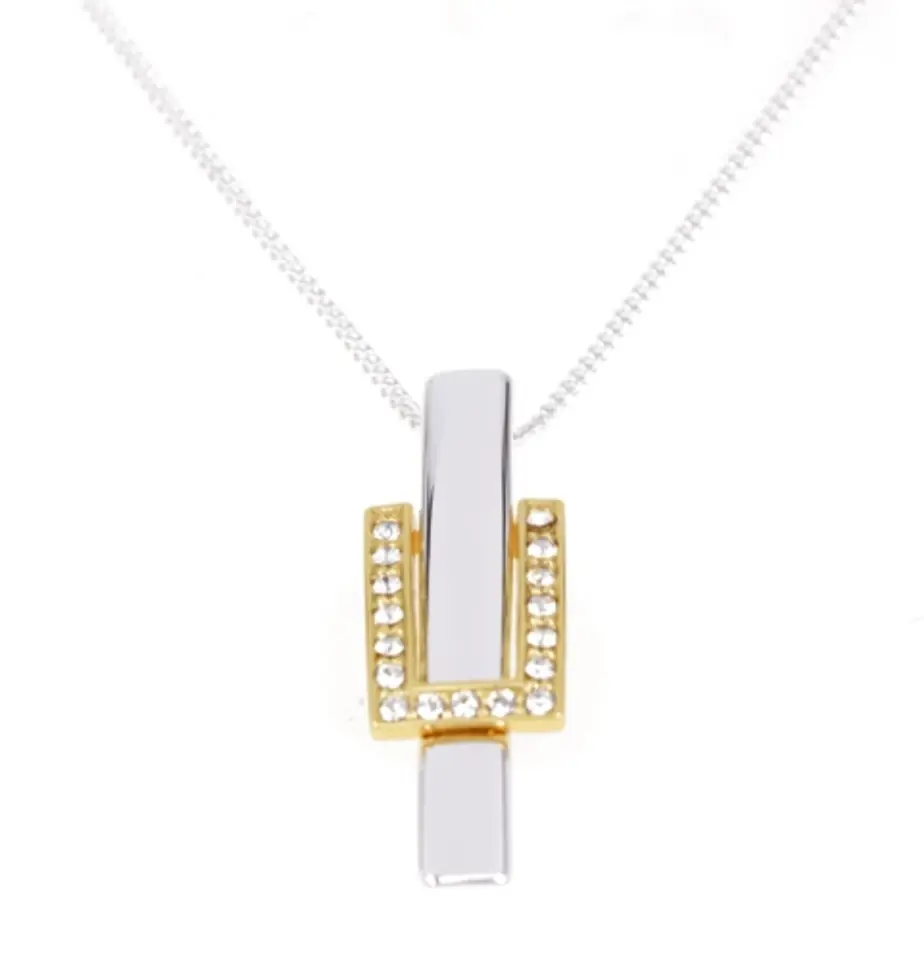 Beautiful necklace in two colors - gold and silver with the addition of Swarovski crystals. Necklace length 42cm, thickness 0.8cm. Pendant length 2.5cm, width 1.1cm, thickness 0.3cm.