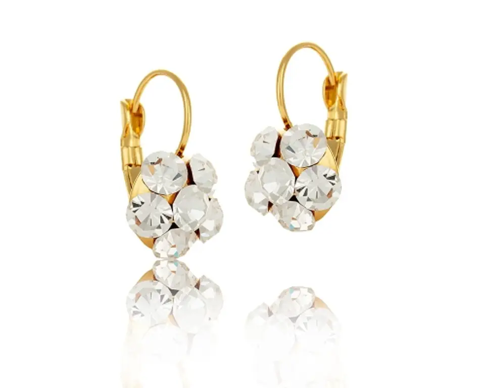 Feminine and elegant earrings with Swarovski crystals fit perfectly with dresses, overalls and suits. Length 2,5cm. Element diameter 1,5cm. Gold-plated earrings.