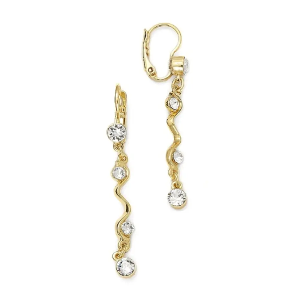 Long earrings with SWAROVSKI crystals fit both solemn styling and everyday look. Earring length 5cm. Earring width 0.5cm. Gold-plated earrings.